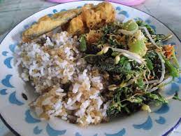 In de ochtenduren wordt rijst gekookt, en wat groente. Daarbij wordt wat tahu/tempe gefrituurd. Doorgaans ook wat maiskoekjes en/of aardappelkoekjes. Vlees komt niet op het menu voor, alleen maar bij feestdagen. Wel eventueel wat kleine gefrituurde visjes. Brood wordt niet gegeten.