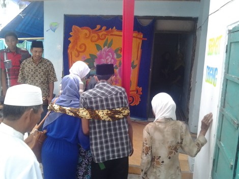 Dag 2: Rond het middaguur kwam de familie van de bruid samen met de bruid en bruidegom naar mijn desa, de desa dus van de bruidegom. Na het uitstappen werd hun water om te drinken aangeboden. Vervolgens werden ze gebonden door een selendang het ouderlijk van de bruidegom binnen gebracht, en vond de begroeting door het bruidspaar met de ouders van de bruidegom plaats. Die begroeting is een zeer emotionele, met name met de moeder (moeders staan in zeer hoog aanzien in de Islam).