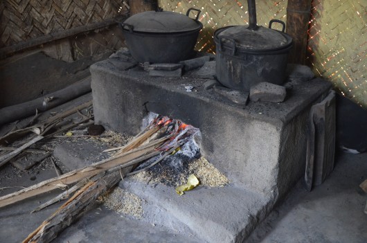 Gekookt wordt een een plek, achterin het huis. Er wordt gekookt op een vuur van hout (zie foto). Fornuizen zijn er niet, sommigen hebben een 1-pits comfort op een gasfles.