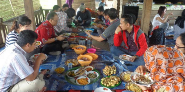 In de desa wordt alom met de (rechter)hand gegeten, zonder gebruik van mes, lepel of vork; dit vindt men veel lekkerder dan eten met vork en lepel. Maar er zijn er ook, die een lepel gebruiken. Mes en vork zijn niet aanwezig.
