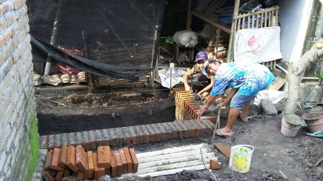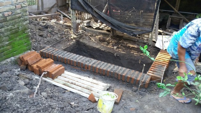 “Mijn” kuil achter mijn huis was vol. We hebben besloten een nieuwe kuil te laten graven. Hieronder ziet U foto’s ervan. 2 Tukangen zijn ermee bezig.