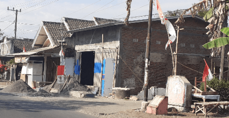 In het centrum van de desa is deze woning gerenoveerd en vergroot; er komt een winkel in. Een deel van de buitenmuren en het dak zijn niet vervangen, wel gerenoveerd. De gehele voorkant is nieuw. Er werken 5 tukangen aan dit project.