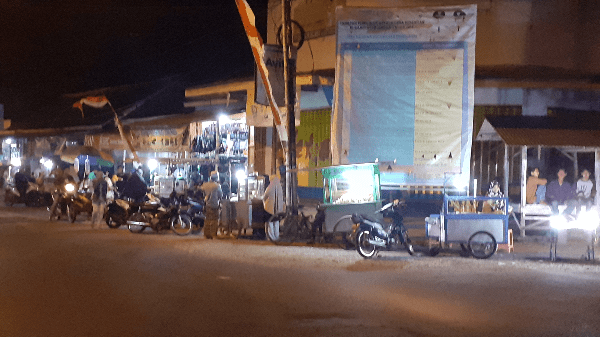 Nu krijgt de “hoofdstraat” welhaast stadse alures. Veel verlichting, grote toko’s, mobiele warungen (kaki lima’s) en na het avondgebed rond 18.00 uur een gezellige drukte. Wat nog ontbreekt, naar mijn idee, is een soort Cafe, waar je kunt zitten voor een (niet-alcoholisch) drankje en meer. Maar daar hebben de desa-bewoners (nog) geen behoefte aan, immers bij elke warung of kaki-lima staan wel een paar krukken of een bamboe bankje.