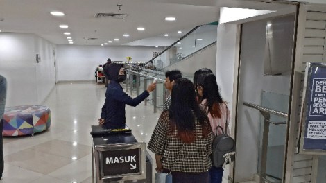 Vanmiddag kregen bezoekers van de Mall Lippo Plaza in Jember een temperatuur-scan bij binnenkomst.