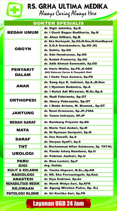 De praktijk van een dokter umum, met de spreekuren: van 16.00 – 20.00 uur.