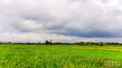 In de kanaaltjes, die naar de sawah’s leiden, is zo nu en dan nog wel water; dat komt van de bergen verderop.