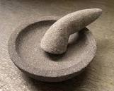 Cobek: een stenen vijzel, waarin sambal wordt gemaakt, dooor verschillende kruiden fijn te wrijven.