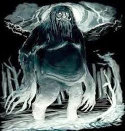 Genderuwo: hantu (spook/geest), doorgaans manlijk, aapachtig met lange haren.