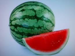 Semangka: meloen, die op de foto hieronder komt het meest voor en is goedkoop.