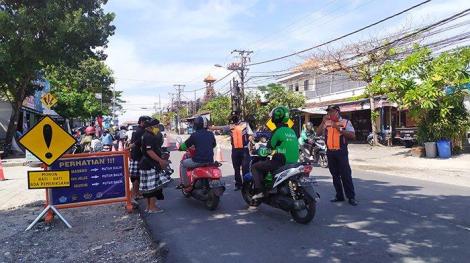 De politie patrouilleert in de avonduren door de desa’s om te checken, of de toko’s wel gesloten zijn.