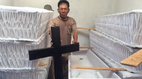De bij de gevangenis Nusa Kembangan afgeleverde doodskisten