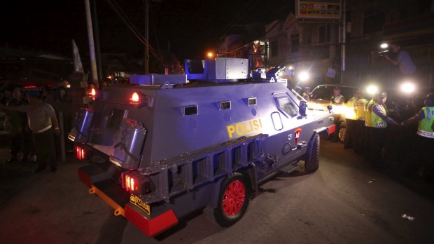 Politietank met beide australiers verlaat de Kerobokan gevangenis in Deenpasar ———————-