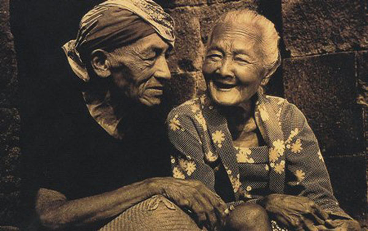 Zo gaat men hier met oude ouders om. Niks geen gespecialiseerd personeel, geen 1-minuut-bezoekje van een wijkverpleegster of een andere (zwaar opgeleide) medewerker van een instelling. Kinderen en kleinkinderen zorgen voor de ouders; het is een volstrekt normale gang van zaken, ik zie dit soort tafereeltjes regelmatig in mijn desa.