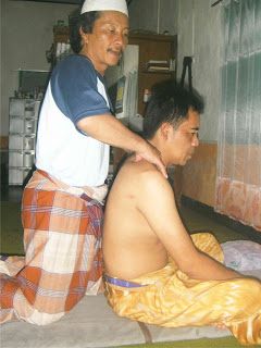 De oude Oma naast mijn huis (ze is in de 90) wordt eenmaal per week gemasseerd, maar dan het gehele lichaam. Het doet haar goed. Het is een broze dame, dus de tukang past zijn massage aan.